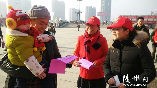 隨州網(wǎng)訊 春節(jié)臨近,隨州市曾都 區(qū)“格格們”在隨州火車站為旅客們提供協(xié)助購票取票、指引乘車、幫助有需要的乘客提行李等志愿服務(wù),并向返鄉(xiāng)的市民宣傳今年市政府的禁鞭政策。 (記者 周 強 通訊員 蔣 君攝) |