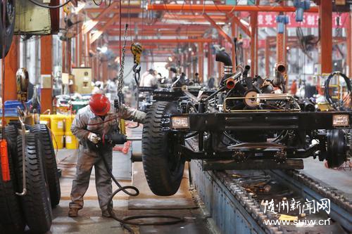 開年以來,東風(fēng)隨州專用汽車有限公司持續(xù)呈現(xiàn)產(chǎn)銷兩旺的良好形勢,目前已銷售底盤1319臺(tái)、改裝車161臺(tái)。圖為東風(fēng)隨州專用汽車有限公司忙碌的生產(chǎn)線。 (隨州日?qǐng)?bào)全媒體記者徐斌攝)