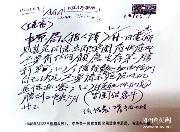 1939年1月,李先念率部南下進駐漿溪店,建立四望山敵后根據(jù)地,由此演繹一曲—— 烽火歲月熱血戰(zhàn)歌 中原局和中原軍區(qū)成立舊址 十年烽火漫漿溪 ——探訪中原軍區(qū)1945年誕生地 隨州日報全媒記者 陳長軍 通訊員 沈憲權(quán) 彭俊 烽火十年,熱血遍灑。漿溪店,一片鐫刻著紅色記憶的土地。 漿溪店,位于鄂豫交界桐柏山南麓的廣水市吳店鎮(zhèn)。特殊的地理位置造就了她的特殊地位,她既是新四軍第五師重要活動地、中共中央中原局和中原軍區(qū)二次組建地、桐柏戰(zhàn)役策源地,也是桐柏區(qū)黨委、桐柏行署和桐柏軍區(qū)成立地。從1939年到1949年,在長達十年的艱苦斗爭中,漿溪店見證了桐柏戰(zhàn)役、中原突圍等中國革命史上的壯麗華章。 銘記歷史,致敬英雄。3月16日,記者來到廣水市吳店鎮(zhèn)漿溪店,追尋紅色足跡,重溫崢嶸歲月,感懷先輩精神。 三大主力勝利會師 再次組建中原軍區(qū) 1939年1月,李先念受中共中央中原局(先后組建三次,這是第一次,在1938年11月組建于延安,后改為華中局)的委派,率新四軍豫鄂獨立游擊大隊(是新四軍五師前身,當(dāng)時對外稱新四軍獨立游擊支隊,李先念任司令員,周志堅任參謀長)160余人從河南確山竹溝出發(fā),南下四望山,進駐漿溪店,聯(lián)系周邊抗日武裝,建立了以漿溪店為中心的四望山敵后抗日根據(jù)地。2月27日,參謀長周志堅率領(lǐng)的游擊大隊在余家店與日偽軍遭遇,共斃敵20余名。余家店戰(zhàn)斗,是新四軍挺進鄂中在鄂豫邊第一次與日軍正面作戰(zhàn),戰(zhàn)果雖小,影響甚大。 此后,李先念率領(lǐng)新四軍豫鄂獨立游擊大隊越過平漢鐵路來到鄂東,又轉(zhuǎn)向鄂中。6月,與陳少敏部在趙家棚會合,組建成立新四軍挺進團。 1939年11月16日,在漿溪店與花山之間的東岳廟召開了四望山會議。會議傳達了中原局書記劉少奇的指示,將豫南、鄂東、鄂中黨和軍隊實行統(tǒng)一領(lǐng)導(dǎo),成立新的鄂豫邊區(qū)黨委,陳少敏任代理書記;組建新四軍鄂豫挺進縱隊,李先念任司令員。不到一年時間,隊伍由160余人發(fā)展到近萬人。 1945年3月,日軍發(fā)動豫西鄂北戰(zhàn)役,新四軍五師為牽制敵人西進,挺進豫西南,著手恢復(fù)四望山根據(jù)地。4月29日,李先念率五師主力由大悟山向北挺進,與任質(zhì)斌所率領(lǐng)的五師一部在應(yīng)北會合后再次進駐漿溪店,將國民黨頑軍全部驅(qū)逐出四望山地區(qū)。 四望山根據(jù)地的恢復(fù)和鞏固,不僅為五師創(chuàng)造了新的指揮中心,也標(biāo)志著鄂豫邊區(qū)由長期反侵略戰(zhàn)爭進入反對國民黨發(fā)動內(nèi)戰(zhàn)的重要轉(zhuǎn)折時期。 1945年8月15日,日本宣布投降后,新四軍五師的后勤、領(lǐng)導(dǎo)機關(guān)及邊區(qū)機關(guān)由大悟遷至漿溪店和吳家店一帶。 在漿溪店尹家灣,看到修繕后的李先念、鄭位三、陳少敏等舊居修舊如舊,基本保持著原貌。走進舊居,一件件革命文物、一幅幅照片仿佛向人們訴說著當(dāng)年新四軍艱苦戰(zhàn)斗的故事。 1945年8月29日,國民黨豫南挺進軍第十三縱隊司令程道榮率部5000余人起義(這是抗戰(zhàn)勝利后全國第一支國民黨起義隊伍),壯大了新四軍第五師的反內(nèi)戰(zhàn)力量。收編程道榮部后,新四軍五師所轄的十三旅、十四旅、十五旅均到達漿溪店、吳家店地區(qū)集結(jié),著手整編部隊,決定成立野戰(zhàn)軍。 9月15日,在漿溪店召開野戰(zhàn)縱隊成立大會。9月16日,李先念、鄭位三、陳少敏、任質(zhì)斌在漿溪店致電中央軍委,提議成立新四軍鄂豫皖指揮部。9月25日,宣布“鄂豫皖中央局開始執(zhí)行職務(wù)”。 10月17日,新四軍五師野戰(zhàn)縱隊分別在漿溪店和吳家店舉行了“反對內(nèi)戰(zhàn),爭取和平”的誓師大會。10月20日,發(fā)起桐柏戰(zhàn)役。戰(zhàn)役第一階段,先后解放了桐柏、棗陽、新野、唐河4座縣城和固縣、平氏、新城、雙溝、湖陽等集鎮(zhèn),控制了以桐柏山為中心的廣大地區(qū)。 為了避免國民黨軍對分散在黃河以南的八路軍、新四軍各個擊破,10月24日,王震、王首道率領(lǐng)的八路軍南下支隊和王樹聲、戴季英率領(lǐng)的河南軍區(qū)部隊,以及冀魯豫軍區(qū)第八團,與李先念、鄭位三率領(lǐng)的新四軍第五師勝利會師。三大主力會師,充實了鄂豫皖中央局的力量。10月30日,中共中央決定將鄂豫皖中央局改為中共中央中原局,鄭位三代理書記(書記徐向前未到職)。同時成立中原軍區(qū),李先念任司令員,鄭位三兼政委。中原局、中原軍區(qū)領(lǐng)導(dǎo)機關(guān)及后勤機關(guān)仍設(shè)在漿溪店。中原局和中原軍區(qū)的成立,統(tǒng)一了中原地區(qū)的領(lǐng)導(dǎo),形成了一個“鐵拳”,直接威脅著蔣軍出川的大門。 1946年6月26日,蔣介石悍然撕毀停戰(zhàn)協(xié)定,發(fā)動了對中原解放區(qū)的大舉圍攻,挑起全面內(nèi)戰(zhàn)。當(dāng)晚,我中原軍區(qū)主力分路進行突圍。中原突圍,揭開了全國解放戰(zhàn)爭的序幕。 7月1日,由李先念、鄭位三和王震率領(lǐng)的北路突圍部隊,到達應(yīng)山以北的泉口店、吳家店、漿溪店一線,就地休整。漿溪店再次成為我軍重整部隊的重地。 中原突圍,打亂了國民黨軍的部署,牽制國民黨軍24個師、8個游擊縱隊不能他調(diào),有力配合了其他解放區(qū)的斗爭。陳毅司令員稱贊:“