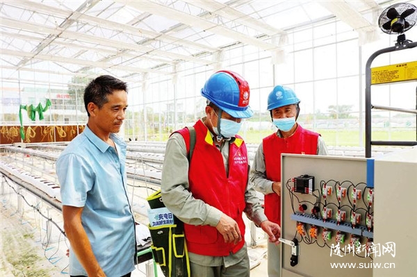 | 近日,廣水供電公司余店供電所“光滿”共產(chǎn)黨員服務隊隊員在余店鎮(zhèn)開展“我為群眾辦實事”實踐活動,上門為余店鎮(zhèn)特色農(nóng)業(yè)“三白”(白茄子、大白菜、白黃瓜)種植戶宣傳安全用電常識,強調(diào)大棚內(nèi)電氣設(shè)備使用注意事項等,及時解決“菜籃子”用電難題,為特色農(nóng)業(yè)發(fā)展提供強有力的電力保障。(隨州日報特約記者程淇、通訊員夏紫君攝) |