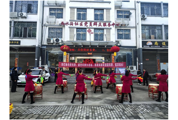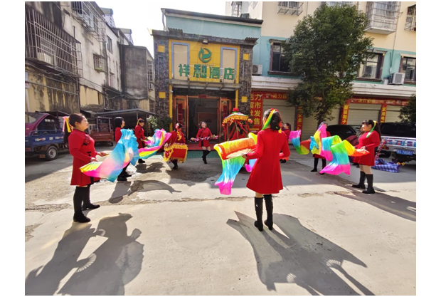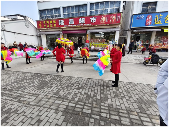 ——兩水溝社區(qū)組織舞蹈隊(duì)進(jìn)商戶送祝福