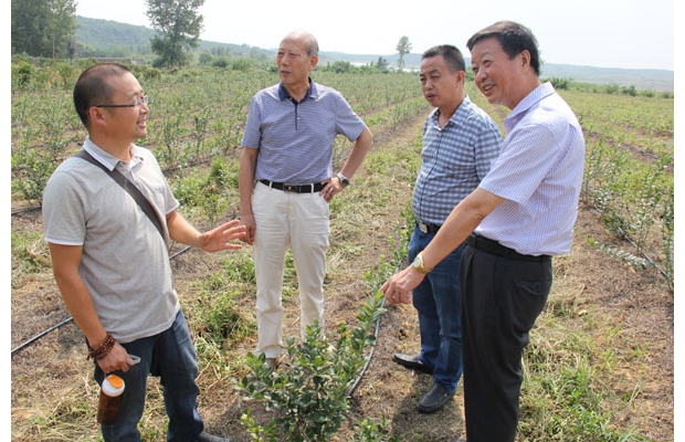 隨州網(wǎng)訊 近日,隨州市老促會(huì)領(lǐng)導(dǎo)到隨縣萬(wàn)福小藍(lán)藍(lán)莓農(nóng)民專業(yè)合作社,調(diào)查藍(lán)莓栽種情況,該合作社自2013年投資200多萬(wàn)元,流轉(zhuǎn)農(nóng)民坡崗地162畝、引進(jìn)博霧、夏普藍(lán)、奧密爾等品種進(jìn)行種植并獲得成功,預(yù)計(jì)明年可產(chǎn)藍(lán)莓5噸,收入50多萬(wàn)元,圖為會(huì)長(zhǎng)梅行全(右一),聽(tīng)取社長(zhǎng)吳慶(左一)介紹藍(lán)莓生長(zhǎng)和管理情況。(通訊員 劉毓 石守京 攝)