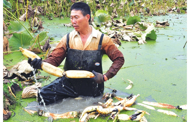 隨州網(wǎng)訊 隨州市隨縣厲山鎮(zhèn)同心村引種的300畝優(yōu)質(zhì)白蓮藕日前進(jìn)入采摘期。該藕采用沼液作肥料,味甘清香,受到市場(chǎng)青睞。 (記者 孫洪濤 通訊員 龔承斌攝)