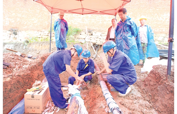 隨州網(wǎng)訊 9月18日,隨州市隨縣供電公司35kV殷店沿巖子河主線因電纜故障導(dǎo)致停電,為盡快恢復(fù)送電,輸電班冒雨開(kāi)展搶修工作,當(dāng)?shù)厝罕姷弥娎|接頭焊接需要搭遮雨棚時(shí),主動(dòng)為供電工人搭好遮雨棚。 (記者 徐斌 通訊員 萬(wàn)明金攝)
