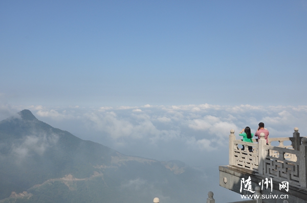 隨州網(wǎng)訊  近日,雨后初霽的大洪山,云蒸霞蔚蔚為壯觀。圖為游客在寶珠峰金頂觀賞云海。 (通訊員 賀曉利攝)