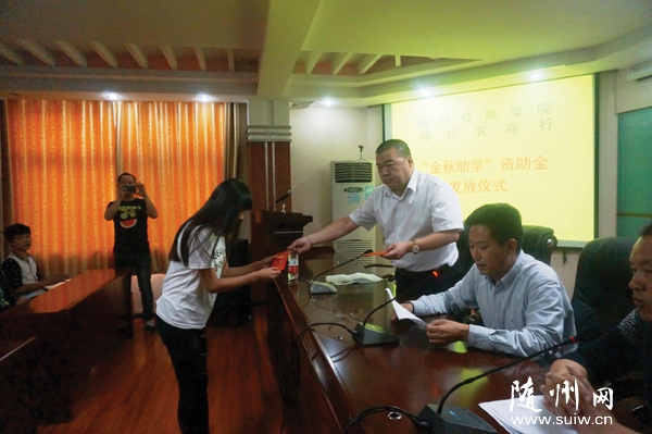 隨州網(wǎng)訊   近日,隨州市農(nóng)商行與隨州技師學(xué)院開展了“金秋助學(xué)”手拉手活動,隨州技師學(xué)院16名同學(xué)獲得資助。(通訊員 王梅攝)