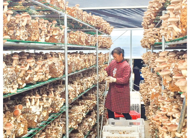 隨州網(wǎng)訊 湖北炎帝科技公司今年新建成的數(shù)十個(gè)智能溫控大棚投入使用,這種大棚出菇量大,質(zhì)量高,污染少,每個(gè)棚可出3茬,頭茬可出菇16噸。(記者 徐斌攝)