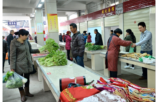 隨州網(wǎng)訊 隨州市曾都區(qū)府河鎮(zhèn)通過(guò)招商引資建成配套完善的新型農(nóng)貿(mào)市場(chǎng)里一片繁忙景象,管理規(guī)范,貨豐價(jià)穩(wěn),方便群眾。 (記者 李文軍 攝)