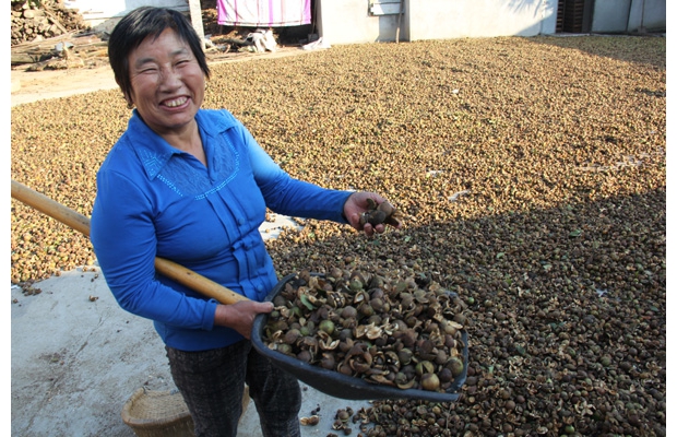 隨州網(wǎng)訊 老區(qū)貧困村隨州市隨縣環(huán)潭鎮(zhèn)劉廟村大力發(fā)展油茶,9組村民李元會抓起油茶籽喜不自禁地說,全村有50多個(gè)村民參與油茶的管護(hù),年工資收入100多萬元,過去的荒山、窮山變成了金山、銀山。(通訊員 石守京攝)