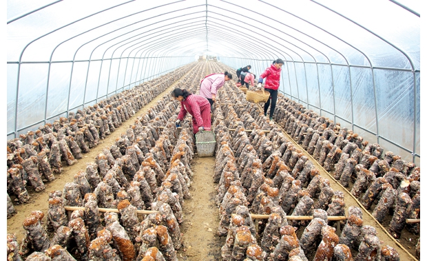 隨州網(wǎng)訊 隨州市曾都區(qū)洛陽鎮(zhèn)九口堰村富民蘑菇農(nóng)民專業(yè)合作社,目前已發(fā)展“菇——稻”高效輪作標(biāo)準(zhǔn)化示范基地2000畝。圖為合作社村民正在采摘蘑菇。 (記者 孫洪濤攝)