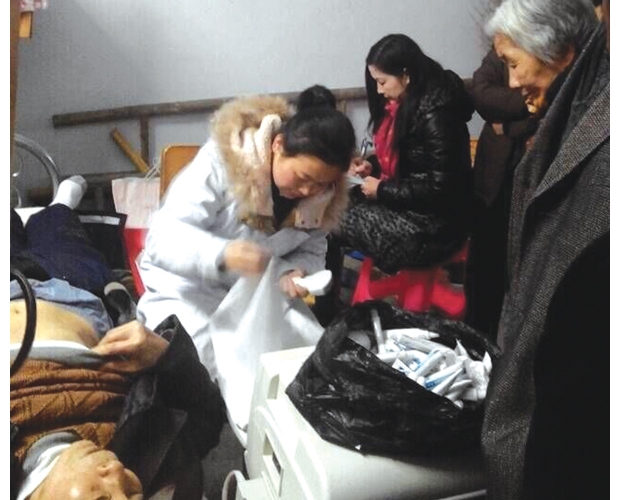隨州網(wǎng)訊 隨州市曾都區(qū)東城烈山社區(qū)聯(lián)合東城衛(wèi)生院深入到居民小區(qū),為65歲以上老人做免費B超體檢。(記者 周強、通訊員 李冰、曾憲君 攝)