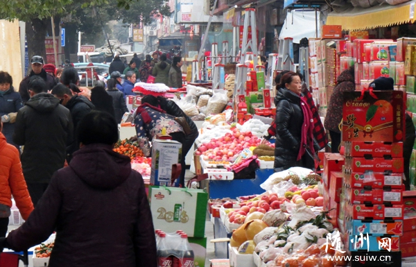 隨州網(wǎng)訊  春節(jié)前夕,隨州市主要商業(yè)街道人頭攢動,擠滿了采購年貨的市民。 (記者 孫洪濤 攝)