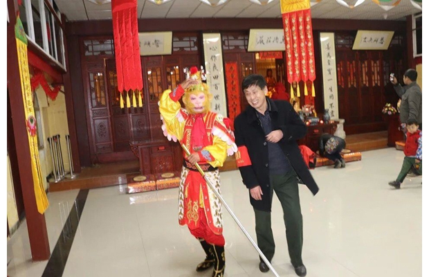 隨州網(wǎng)訊 在派出所、城管和社區(qū)居委會的積極行動下,隨州高新區(qū)淅河鎮(zhèn)寶善寺慶元宵一“炮”未放,熱鬧非凡。圖為市民爭相與表演節(jié)目的“美猴王”合影。(本報記者 周 強 通訊員 陳國海攝)