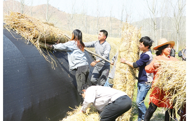 隨州網(wǎng)訊 隨州市隨縣殷店鎮(zhèn)代家灣村五組村民趙鋒,開春以來投資40余萬元,購(gòu)置6萬袋袋料香菇、2萬棒白木耳,開展食用菌種植,以帶動(dòng)鄉(xiāng)鄰們共同致富。圖為村民給大棚搭草簾遮陽降溫。 (本報(bào)記者 白丁攝)