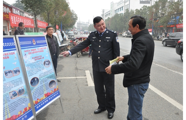 隨州網(wǎng)訊 隨州市隨縣公安局交警部門近日在隨縣厲山鎮(zhèn)天星街開展了以“安全文明出行”為主題的宣傳活動(dòng)。(記者 周強(qiáng)攝)