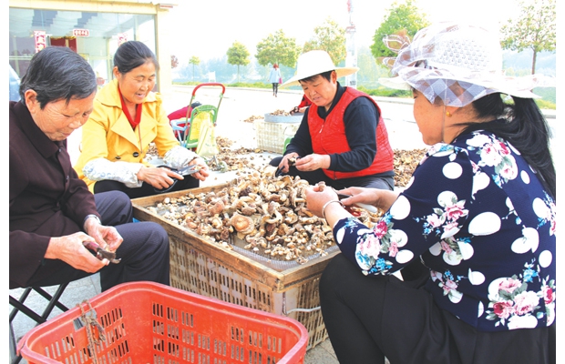 隨州網(wǎng)訊 4月12日,年產(chǎn)香菇1300多噸的隨州市隨縣老區(qū)環(huán)潭鎮(zhèn),將317個(gè)貧困戶列入扶持種植香菇產(chǎn)業(yè)脫貧戶。圖為該鎮(zhèn)柏樹崗村村民,搶晴天分揀香菇曬干,提質(zhì)增效。 (通訊員 石守京 攝)
