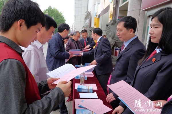 隨州網(wǎng)訊   隨州市中級人民法院通過探索知識產(chǎn)權(quán)保護(hù)執(zhí)法聯(lián)動機(jī)制,成為首批全省法院知識產(chǎn)權(quán)審判 “三合一”改革試點(diǎn)法院。圖為4月25日該院在城區(qū)解放路開展知識產(chǎn)權(quán)宣傳周活動。(本報(bào)記者 李文軍 通訊員 李永強(qiáng) 攝)