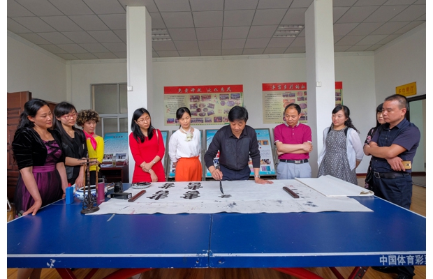 隨州網(wǎng)訊 隨州市曾都區(qū)群藝館堅(jiān)持常年開(kāi)展群眾“文化大講壇”活動(dòng),以豐富市民業(yè)余文化生活。圖為5月5日群眾“文化大講壇”上,書(shū)法家為書(shū)法愛(ài)好者現(xiàn)場(chǎng)授課。 (記者 李文軍 攝)