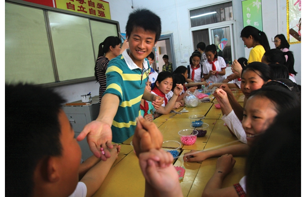 隨州網(wǎng)訊 近日,隨州市曾都區(qū)東關(guān)學校與區(qū)特殊教育學校開展少先隊員“手拉手”活動,圖為兩校同學同上一節(jié)手工課。 (本報記者 王璟天 攝)