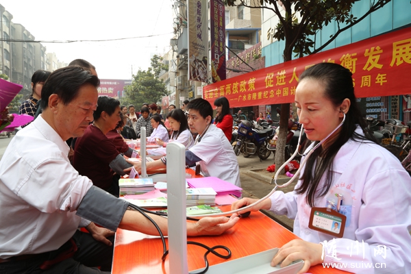 近日,廣水市計(jì)生協(xié)會(huì)組織醫(yī)務(wù)人員走上街頭,向廣大群眾宣傳國(guó)家全面實(shí)施兩孩政策、免費(fèi)孕前優(yōu)生健康檢查、優(yōu)生優(yōu)育、生殖保健等知識(shí),并免費(fèi)為過(guò)往居民義診。 (隨州網(wǎng)記者 王璟天 通訊員 劉曉斌 攝)