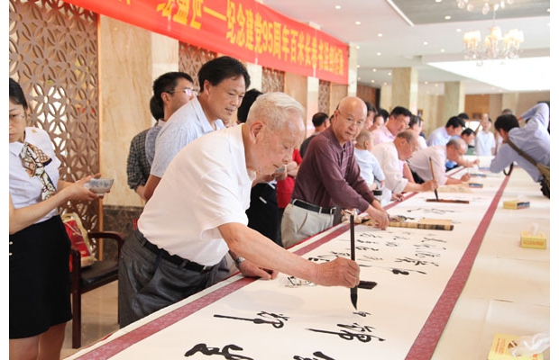 6月28日,廣水市舉辦“迎七一、書黨恩、揚國粹、繪盛世”紀念建黨95周年百米長卷書法創(chuàng)作展,百名書法家同時揮毫潑墨書寫百米書法長卷,將傳統(tǒng)書法藝術(shù)與頌黨恩有機融合,熱情歌頌了我黨95年來的光輝歷程和偉大業(yè)績。 (通訊員 劉曉斌 攝)