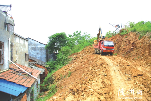 隨州網(wǎng)訊  7月5日,隨州市曾都區(qū)府河鎮(zhèn)白河灘村衛(wèi)生室房屋背后山體出現(xiàn)裂縫,該鎮(zhèn)組織工程機(jī)械除險(xiǎn)救災(zāi),避免山體滑坡造成群眾生命財(cái)產(chǎn)損失。(記者 王璟天攝)