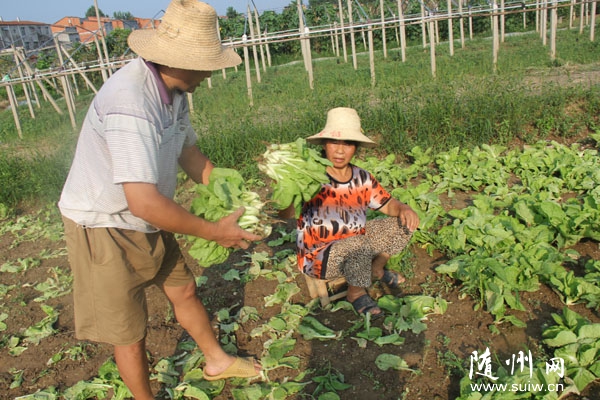 隨州網(wǎng)訊  7月8日,隨州市曾都區(qū)萬店鎮(zhèn)塔兒灣居委會劉大勇夫婦,搶收毛白菜支持災(zāi)區(qū)市場供應(yīng)。(通訊員 石守京 攝)