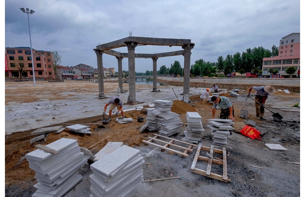 隨州網(wǎng)訊 7月17日,隨州市隨縣洪山鎮(zhèn)中心文化廣場(chǎng)建設(shè)施工現(xiàn)場(chǎng)。該鎮(zhèn)近年加大集鎮(zhèn)建設(shè)力度,不斷完善城鎮(zhèn)功能,打造隨南中心集鎮(zhèn)。 (記者 李文軍 攝)