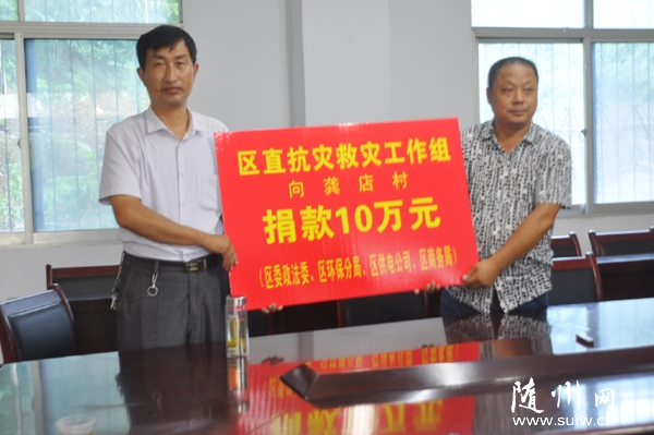 曾都區(qū)區(qū)直抗災(zāi)救災(zāi)工作組將捐款送到洛陽鎮(zhèn)龔店村