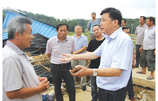 隨州網(wǎng)訊 八月八日,華中農(nóng)業(yè)大學(xué)教授邊銀丙(前右一)一行,來(lái)到華中農(nóng)大科研教學(xué)基地、曾都區(qū)洛陽(yáng)鎮(zhèn)九口堰富民蘑菇專(zhuān)業(yè)合作社,慰問(wèn)菇農(nóng),指導(dǎo)災(zāi)后生產(chǎn)技術(shù)。(通訊員 劉毓 石守京攝)