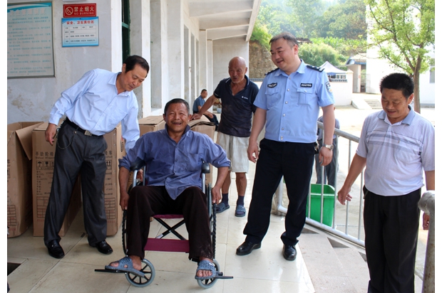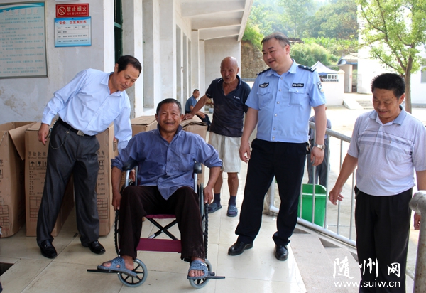 隨州網(wǎng)訊 隨州市曾都區(qū)公安分局洛陽派出所日前將價值5000元的輪椅送到當(dāng)?shù)馗@,方便福利院的老人出行。(記?孫洪濤 通訊員 毛利 攝)