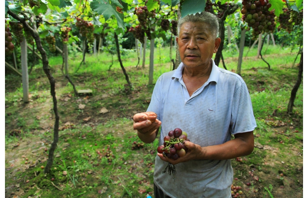 隨州網(wǎng)訊 持續(xù)高溫后的集中降雨,造成隨縣尚市鎮(zhèn)葡萄裂口,影響了賣相和品質(zhì),價(jià)格下降,種植戶減收。當(dāng)?shù)卣e極牽線搭橋,吸引周邊河南等地自駕游客人進(jìn)園采摘,幫助種植戶減少損失。(記者 王璟天攝)