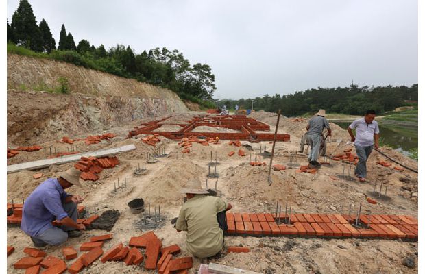 隨州網(wǎng)訊 今年,強降雨致使我市部分鄉(xiāng)鎮(zhèn)農(nóng)民房屋倒塌。隨州市住建委積極指導(dǎo)群眾恢復(fù)重建,選址安全、宜居地段。圖為廣水馬坪鎮(zhèn)居民重建點施工現(xiàn)場。 (記者 徐斌 攝)