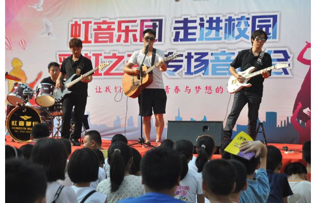 隨州網(wǎng)訊 9月8日,虹音樂團應(yīng)邀來到隨州市曾都區(qū)實驗中學(xué),為學(xué)生們進行吉它專場表演,滿足學(xué)生們對音樂的熱愛,以此共同慶祝教師節(jié)的到來。 (記者 陳德友 攝)