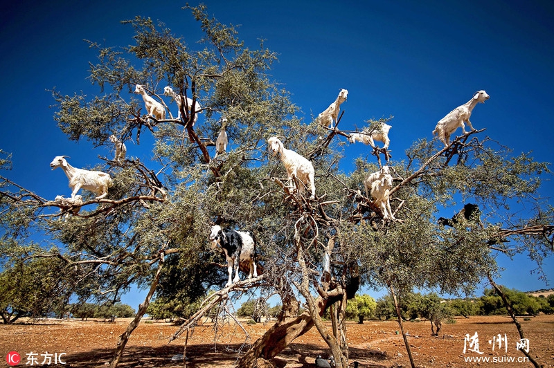 2016年9月28日?qǐng)?bào)道,乍看這圖你是不是覺得很驚奇,居然還有能結(jié)“羊果實(shí)”的樹?!但實(shí)際上,這是一群饞嘴的吃貨山羊,它們盯上了摩洛哥堅(jiān)果樹上的果實(shí),一齊爬上樹采食,憑借自身極高的平衡能力,懸在樹梢大快朵頤,遠(yuǎn)遠(yuǎn)望去就像是結(jié)了一樹的山羊果子,十分搞笑。東方IC