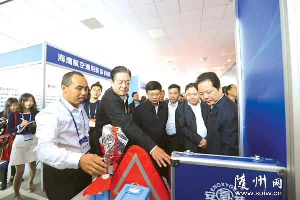 隨州網(wǎng)訊  10月18日,工信部黨組成員、辦公廳主任莫瑋(右四)、副省長(zhǎng)許克振(右二)、市委書記劉曉鳴(右一)等領(lǐng)導(dǎo)和嘉賓參觀應(yīng)急產(chǎn)品和服務(wù)成果展。 (記者 徐斌攝)