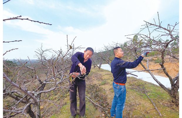 隨縣唐縣鎮(zhèn)華寶山村的果農提前對油桃進行清園、追肥和剪枝,確保來年果樹健康成長