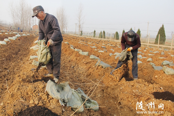 隨州網(wǎng)訊  近日,隨州市老促會幫扶的曾都區(qū)萬店鎮(zhèn)龍頭灣村3組藍(lán)莓產(chǎn)業(yè)園里,村民們?yōu)闃涓C下肥。(通訊員 石守京攝)