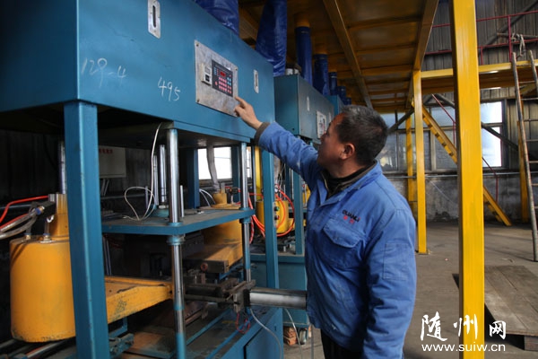 隨州網(wǎng)訊  隨州市隨縣柳林鎮(zhèn)引進(jìn)深圳兆恒通金屬材料公司投資3000萬元,建設(shè)湖北碩泰精密鑄造有限公司,生產(chǎn)汽車配件。圖為工人正在進(jìn)行設(shè)備安裝調(diào)試。(本報(bào)記者 王璟天 攝)