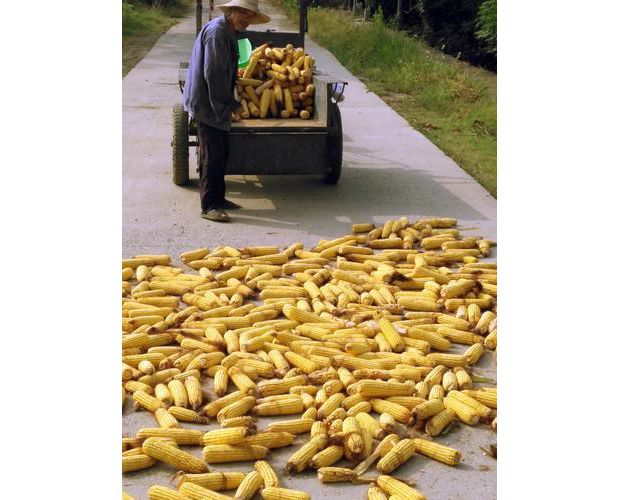 隨州網(wǎng)訊 隨州市隨縣均川鎮(zhèn)農(nóng)民利用晴好天氣晾曬收獲的玉米。村民們說,玉米現(xiàn)在的用途很廣泛,價格比較穩(wěn)定,非常適合當?shù)胤N植。 (本報記者孫洪濤 攝)