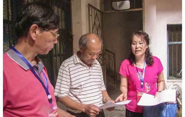 隨州網(wǎng)訊 隨州市曾都區(qū)東城辦事處舜井道社區(qū)集體產(chǎn)權(quán)制度改革,近日組織工作人員走街串戶,開展清產(chǎn)核資、清人分類和入戶登記,讓集體產(chǎn)權(quán)明明白白。該社區(qū)在壯大集體經(jīng)濟(jì)的同時(shí),根據(jù)盈利情況給居民配股分紅,讓大家共享發(fā)展成果。 (本報(bào)記者 李文軍 攝)
