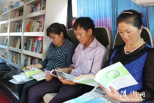 隨州網(wǎng)訊  日前,大洪山風(fēng)景名勝區(qū)開(kāi)展“送書下鄉(xiāng)文化惠民”活動(dòng),請(qǐng)來(lái)了隨縣圖書館流動(dòng)圖書車,將公共圖書“搬”到農(nóng)村基層,零距離服務(wù)群眾。圖為當(dāng)?shù)卮迕裨诹鲃?dòng)圖書車上翻閱圖書。 (本報(bào)記者 王璟天攝)