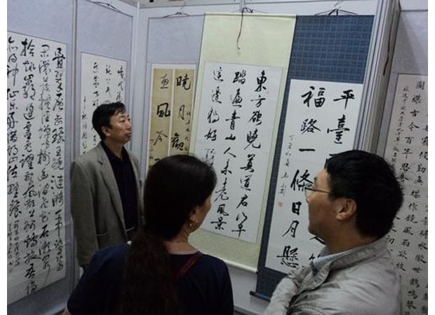 隨州網(wǎng)訊 10月2日,廣水舉辦“喜迎十九大、共圓中國(guó)夢(mèng)”書(shū)法展暨第二屆飛凌民間文化藝術(shù)品博覽會(huì)。近80幅謳歌中國(guó)共產(chǎn)黨、謳歌社會(huì)主義、謳歌黨的十九大勝利召開(kāi)的名家書(shū)法精品,為本次展會(huì)增添了濃墨重彩的一筆。(通訊員 劉曉斌攝)