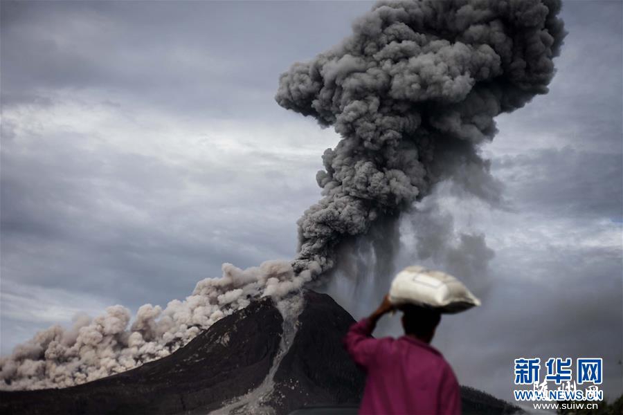 這是2017年122日在印度尼西亞北蘇門答臘省卡羅拍攝的錫納朋火山噴發(fā)的場(chǎng)景。錫納朋火山位于印尼北蘇門答臘省的卡羅縣,在沉寂近400年后于2010年首度噴發(fā)。20156月以來(lái),該火山一直處于最高警戒級(jí)別狀態(tài)。新華社發(fā)(安德里·金廷攝)