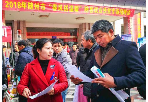 隨州網(wǎng)訊 2月24日,全市“春風(fēng)送溫暖”隨縣就業(yè)扶貧首場(chǎng)招聘會(huì)開(kāi)鑼,來(lái)自該縣各鄉(xiāng)鎮(zhèn)5000余名大中專畢業(yè)生、農(nóng)村能工巧匠前來(lái)參加應(yīng)聘。 (本報(bào)記者 李文軍 通訊員 龔承斌 彭冬梅 攝)