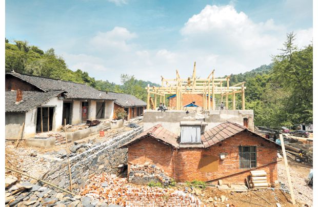 隨州網(wǎng)訊 曾都區(qū)洛陽鎮(zhèn)胡家河村利用旅游資源優(yōu)勢打造民宿試點,帶動農(nóng)民致富,圖為4月27日,胡家河村三組民宿改造施工現(xiàn)場。(本報記者 徐斌 攝)