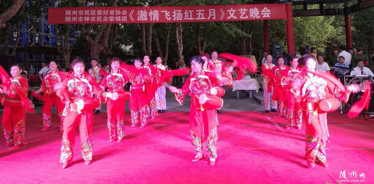 513日晚,隨州市民歌愛好者協(xié)會、隨州市神農(nóng)民眾歌唱團(tuán)組織的《2018激情飛揚(yáng)紅五月》文藝晚會在神農(nóng)公園隆重舉行。業(yè)余演員們用燃燒的激情唱紅歌、跳紅舞歌頌祖國,悠揚(yáng)的歌聲及優(yōu)美的舞姿吸引2000余人前來觀看。(段春善 攝)