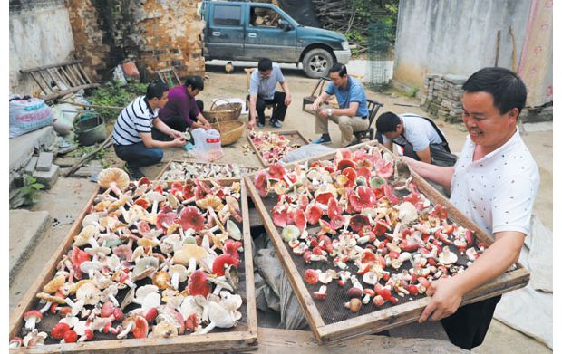 隨州網(wǎng)訊 隨縣萬(wàn)和鎮(zhèn)依托自然優(yōu)勢(shì),鼓勵(lì)農(nóng)戶采集黃絲菌、青頭菌、牛肝菌等本地特色野山菌,人均年采菌收入達(dá)5000元以上。產(chǎn)品經(jīng)過(guò)烘干、包裝,通過(guò)電商平臺(tái)銷(xiāo)往成都、上海、昆明等大中城市,備受客戶青睞。圖為省級(jí)貧困村佛山村農(nóng)戶在駐村扶貧工作隊(duì)的幫助聯(lián)系下,對(duì)山野菌進(jìn)行分揀,銷(xiāo)售給上門(mén)收購(gòu)的經(jīng)銷(xiāo)商。 (通訊員 任尚海攝)