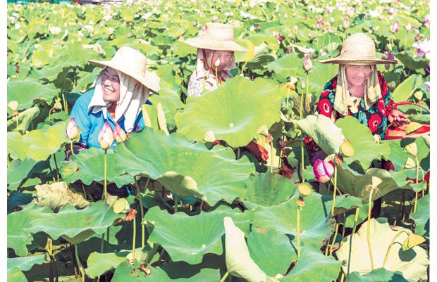 隨州網(wǎng)訊 廣水市城郊街道辦事處油榨橋村引進(jìn)湖北鑫綠生態(tài)農(nóng)業(yè)有限公司投資300多萬(wàn)元,種植太空蓮1050畝,吸引大量游客觀光休閑。該村太空蓮產(chǎn)業(yè)采取“企業(yè)主體、群眾參與”機(jī)制,目前已有96個(gè)農(nóng)戶入股參與,公司日常管理用工優(yōu)先考慮本村貧困村民。圖為村民正在采蓮蓬。(通訊員 熊言澄攝)