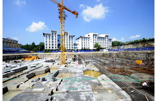 隨州網(wǎng)訊 在隨縣厲山鎮(zhèn),一批基礎(chǔ)設(shè)施和民生項目正在施工。圖為該縣中醫(yī)醫(yī)院綜合大樓施工現(xiàn)場。(本報記者 孫洪濤 通訊員 龔承斌 攝)